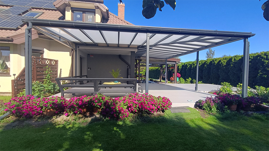 - Zadaszenia tarasów – projektowane i wykonywane na wymiar, zapewniają ochronę przed słońcem oraz opadami przez cały rok, niezależnie od pogody.